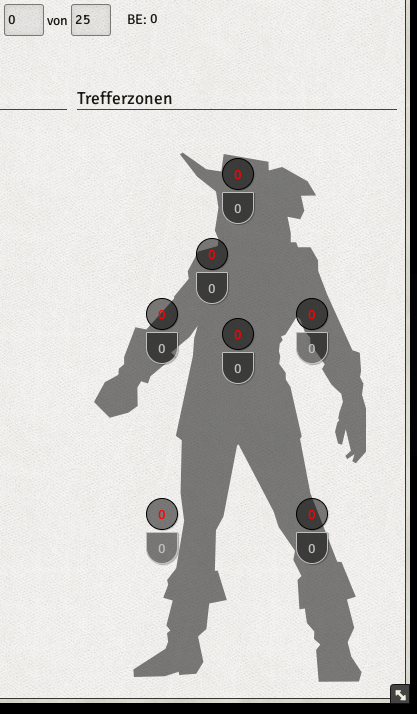 Implementiert Wunden und Trefferzonen Wunden, sowohl visuell als auch rechnerisch. Welches System Verwendung findet kann in den Einstellungen der Welt eingestellt werden.